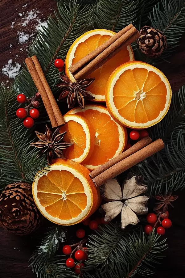 Poster Tekening van fruit, sinaasappel en kaneel N° f46986