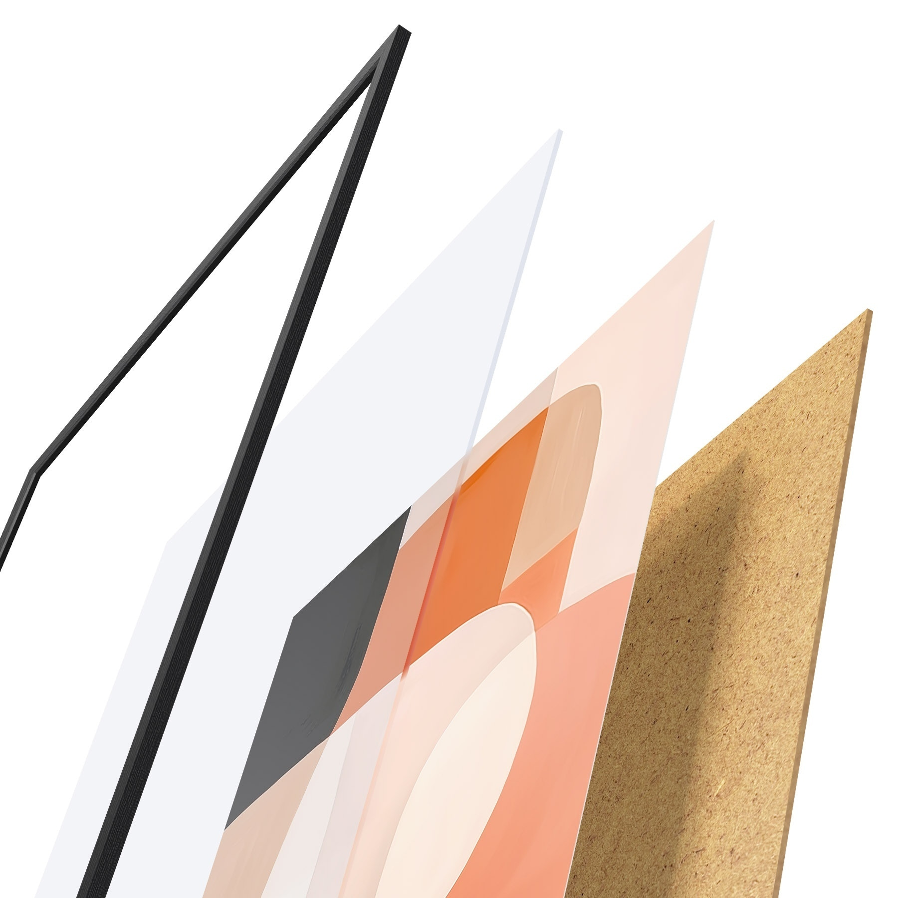 De poster bestaat uit een frame, plexiglas, geprinte afbeelding en spaanplaat achterkant. De poster kan meteen aan de muur worden gehangen dankzij de bevestigingen op de achterkant.