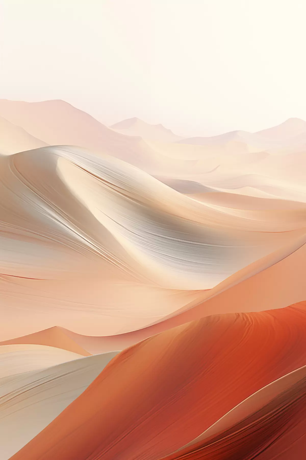 Poster Abstract woestijnlandschap met vloeiende zandduinen in warme oranje en witte tinten N° f47030