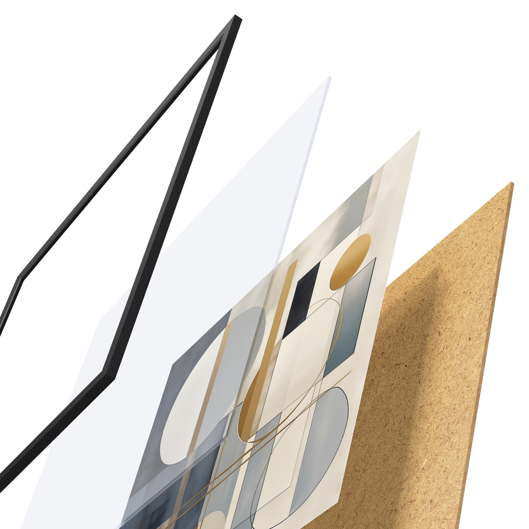De poster bestaat uit een frame, plexiglas, geprinte afbeelding en spaanplaat achterkant. De poster kan meteen aan de muur worden gehangen dankzij de bevestigingen op de achterkant.