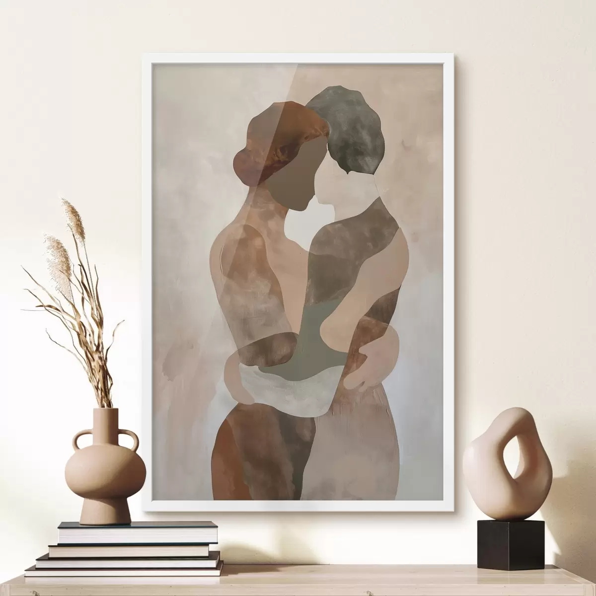 De poster bestaat uit een frame, plexiglas, geprinte afbeelding en spaanplaat achterkant. De poster kan meteen aan de muur worden gehangen dankzij de bevestigingen op de achterkant.