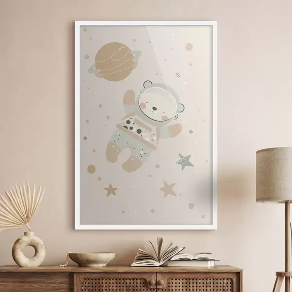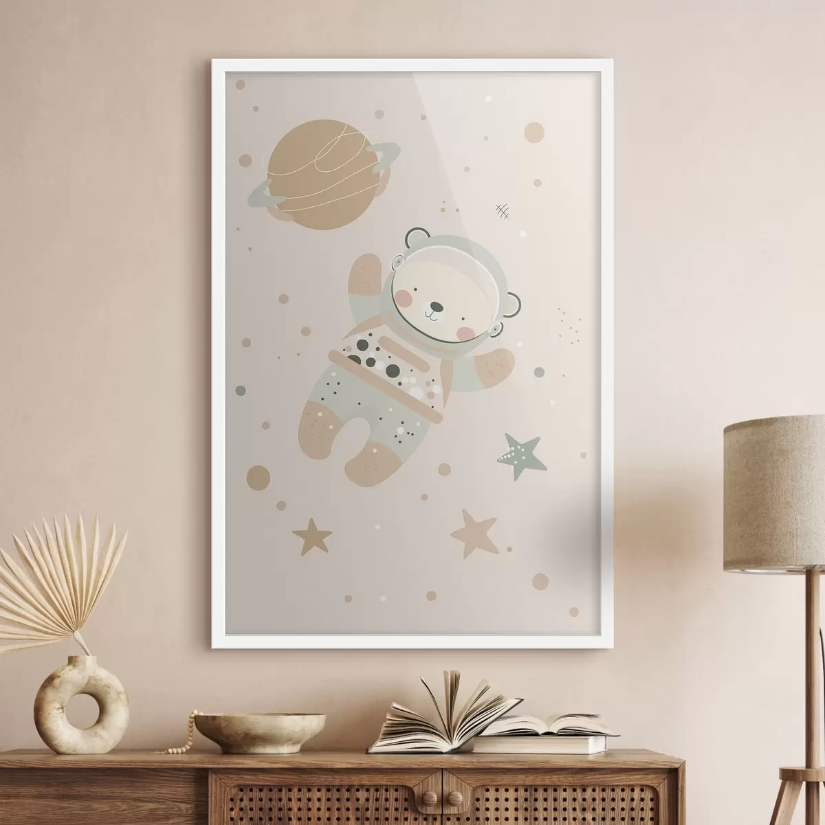 De poster bestaat uit een frame, plexiglas, geprinte afbeelding en spaanplaat achterkant. De poster kan meteen aan de muur worden gehangen dankzij de bevestigingen op de achterkant.