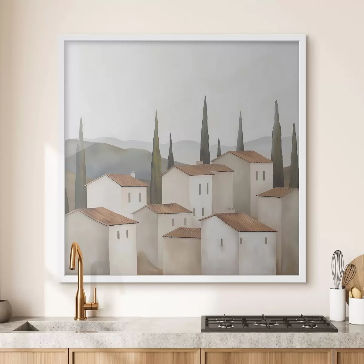 Je kunt het schilderij ophangen aan schroeven. Hiervoor leveren we bevestigingen bij onze foto's, zodat je de foto gemakkelijk kunt ophangen.