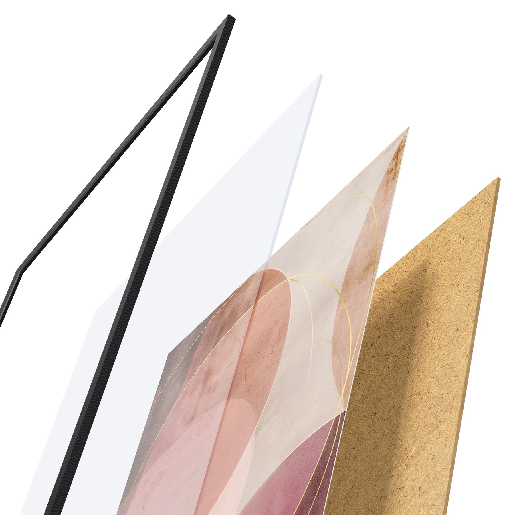 De poster bestaat uit een frame, plexiglas, geprinte afbeelding en spaanplaat achterkant. De poster kan meteen aan de muur worden gehangen dankzij de bevestigingen op de achterkant.
