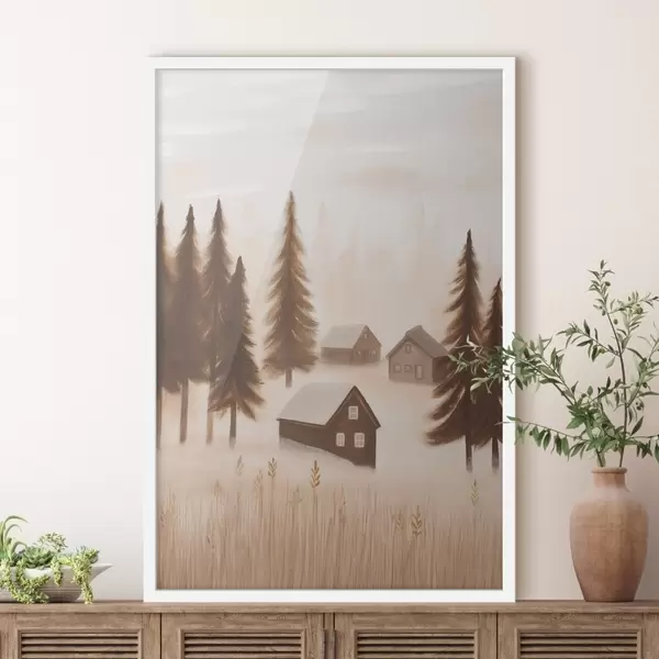 De poster bestaat uit een frame, plexiglas, geprinte afbeelding en spaanplaat achterkant. De poster kan meteen aan de muur worden gehangen dankzij de bevestigingen op de achterkant.