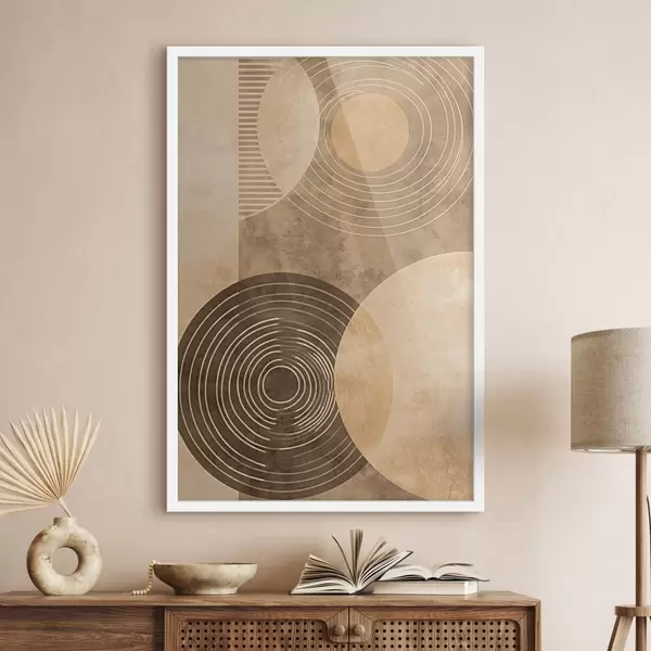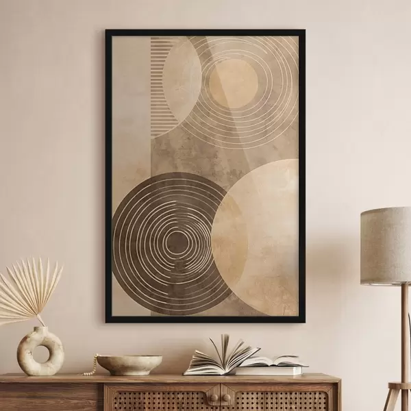 De poster bestaat uit een frame, plexiglas, geprinte afbeelding en spaanplaat achterkant. De poster kan meteen aan de muur worden gehangen dankzij de bevestigingen op de achterkant.