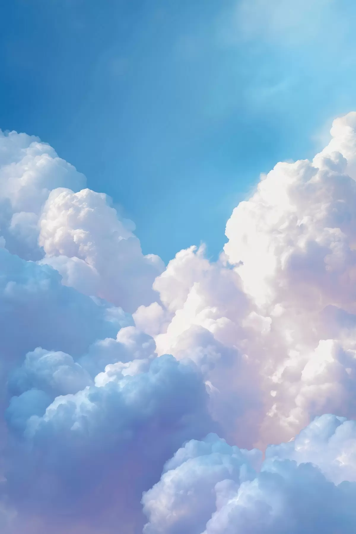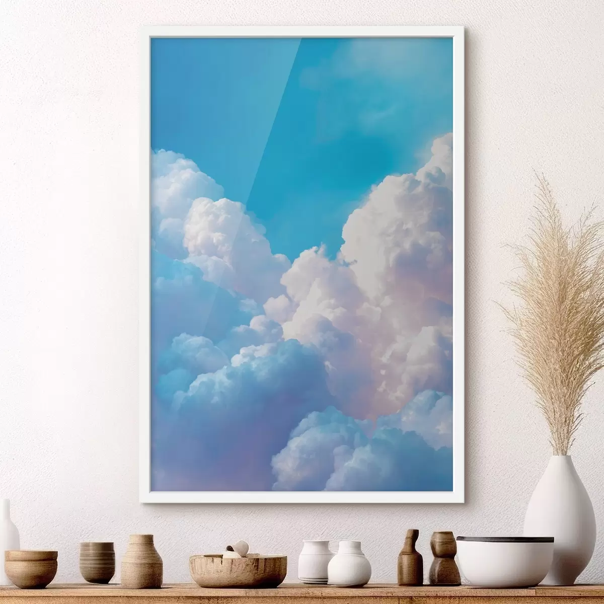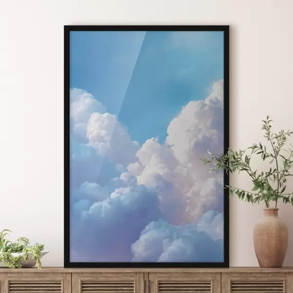 Poster Pittoresk luchtlandschap met enorme witte wolken in digitale grafische stijl N° f47089