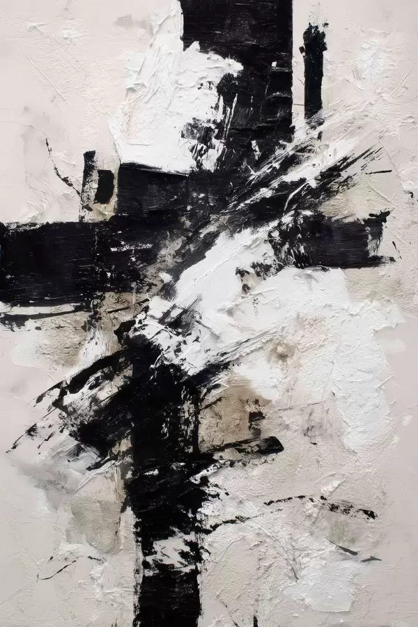 Poster Modern abstract interieur met chaotische lijnen en volumetrische penseelstreken in canvas schilderstijl N° f47090