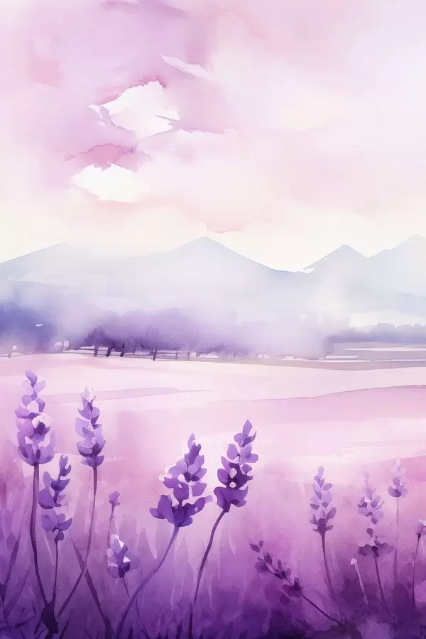 Poster Lavendelbloemen, imitatie-aquarel f47108