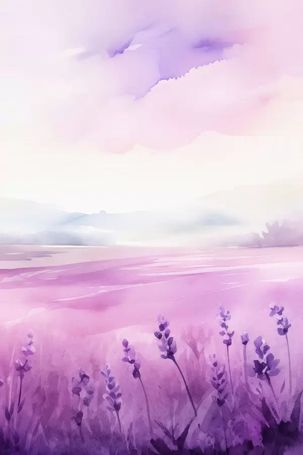 Poster Lavendelveld, imitatie-aquarel N° f47109