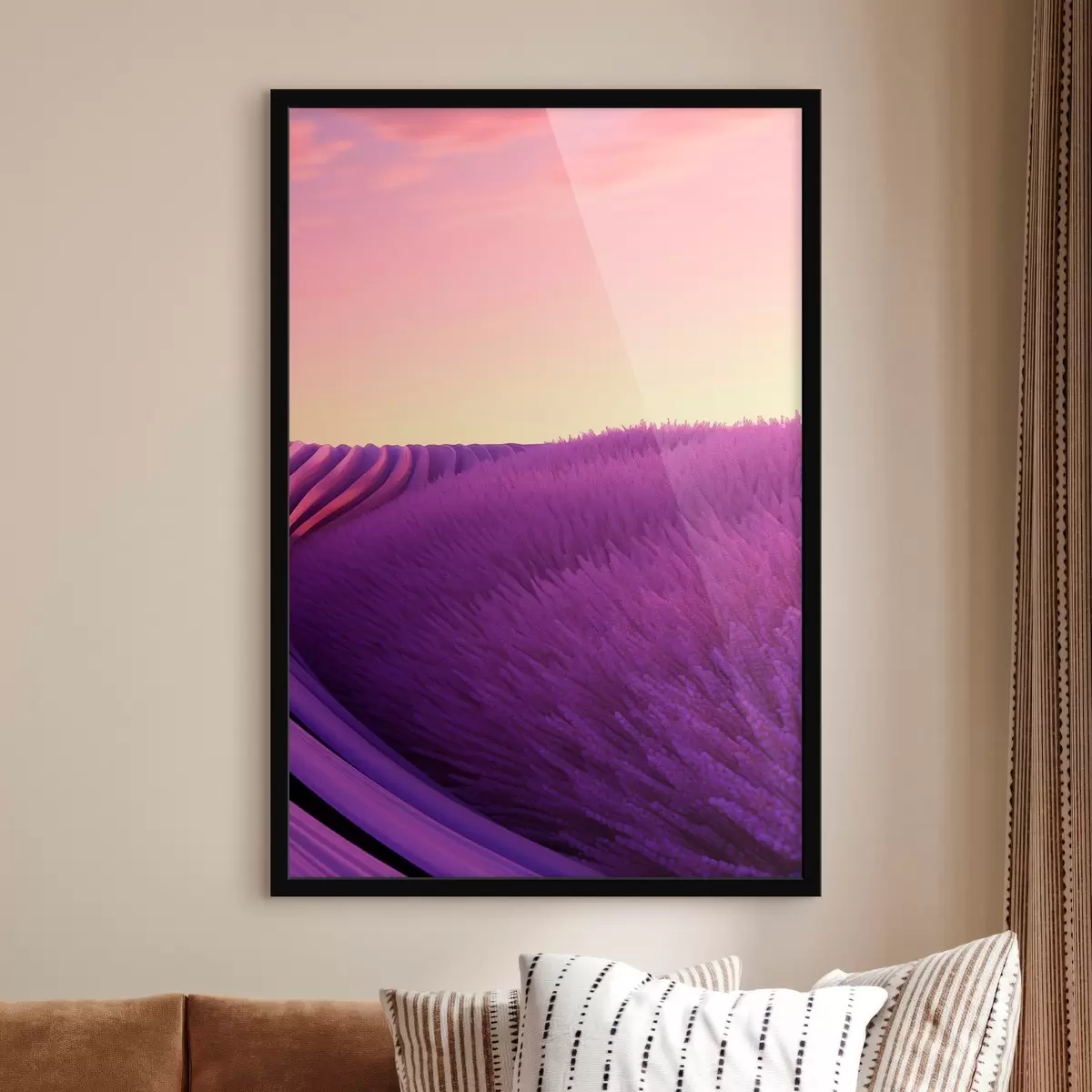 Poster Lavendelveld tegen de zonsondergang N° f47111