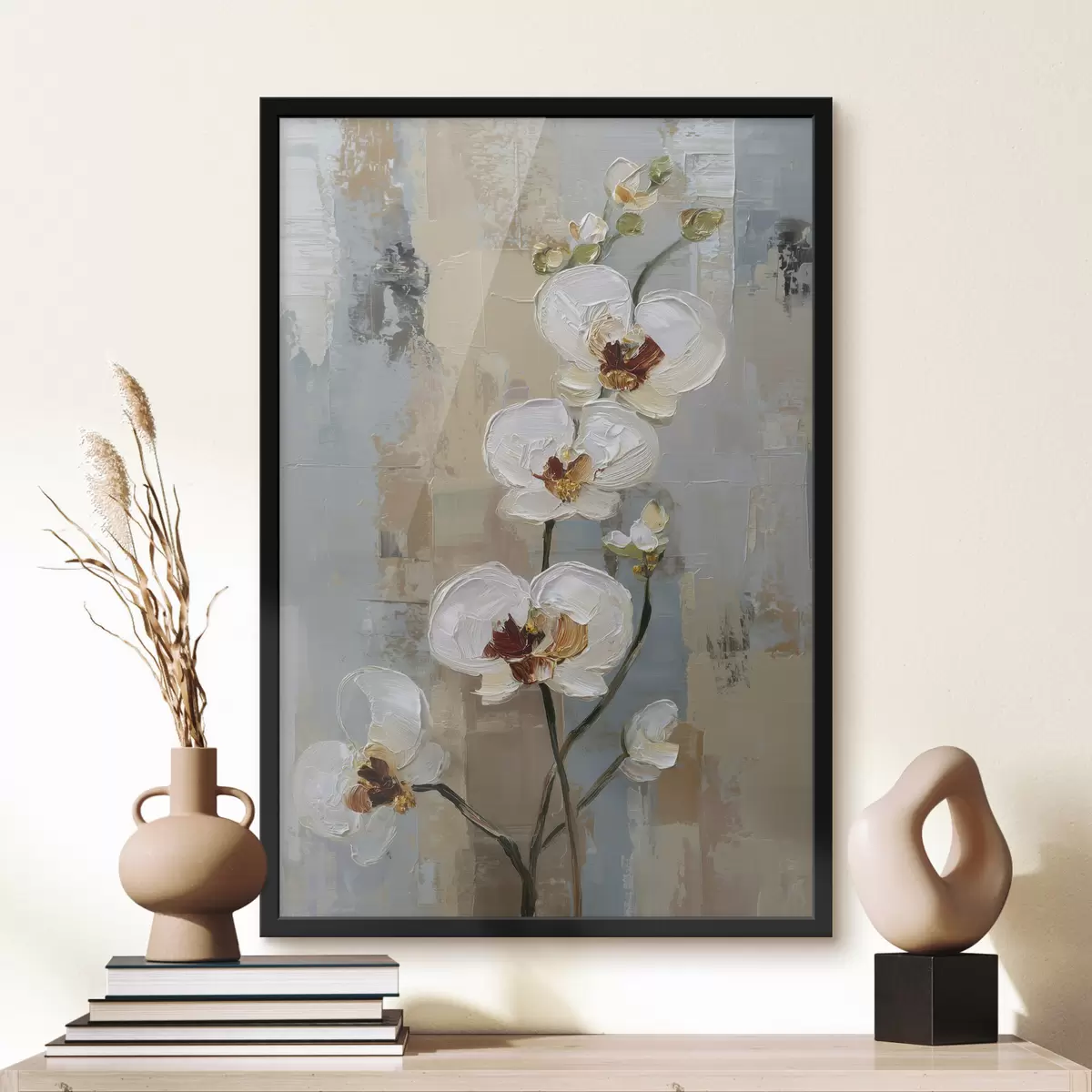 Poster witte orchideebloemen in de stijl van een olieverfschilderij N° f47131