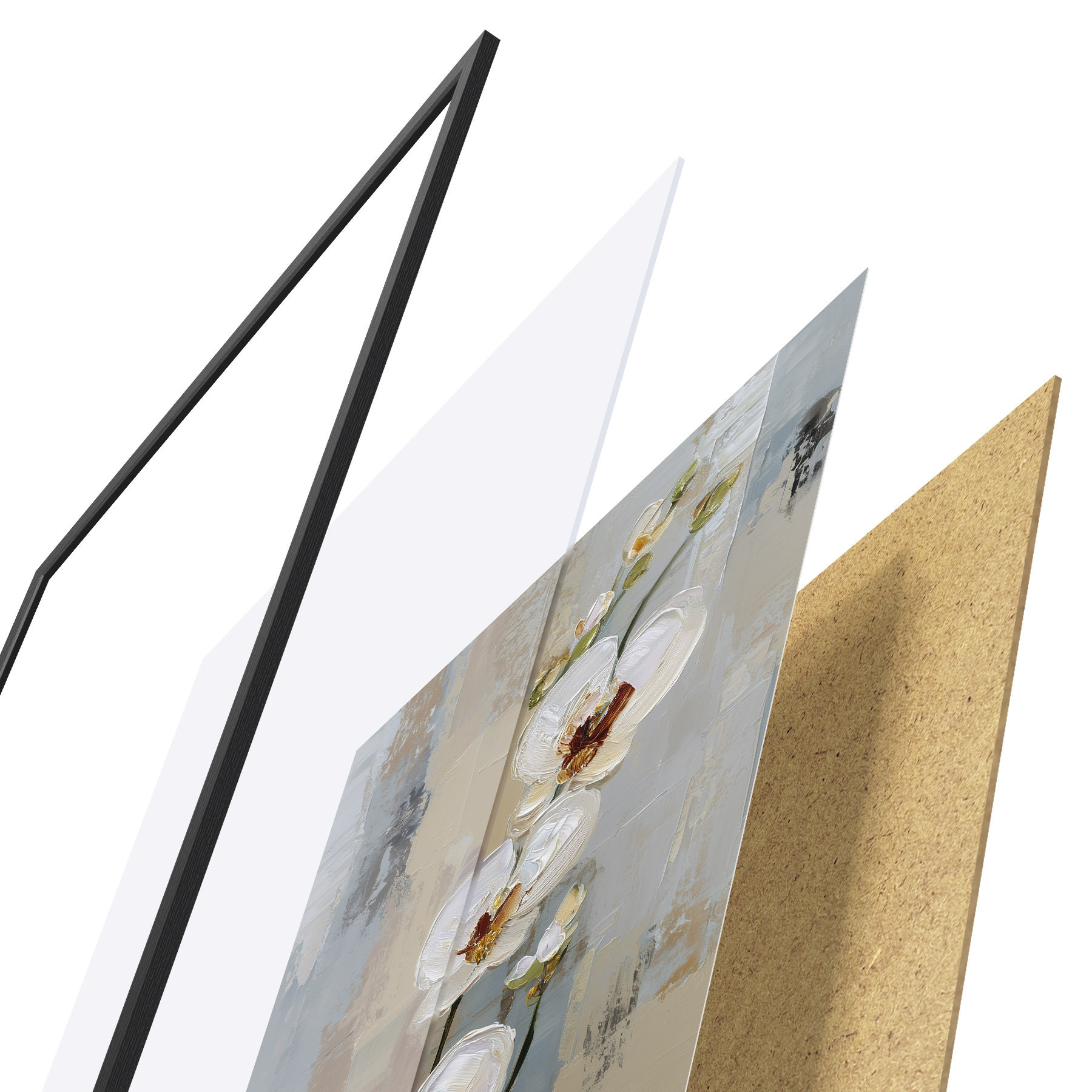 De poster bestaat uit een frame, plexiglas, geprinte afbeelding en spaanplaat achterkant. De poster kan meteen aan de muur worden gehangen dankzij de bevestigingen op de achterkant.
