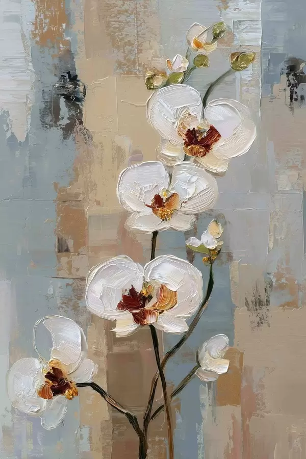 Poster witte orchideebloemen in de stijl van een olieverfschilderij N° f47131