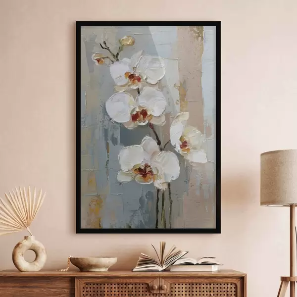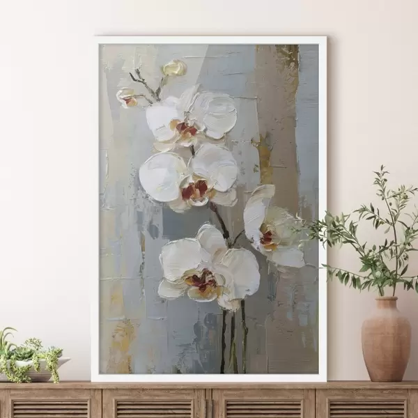 Poster witte orchideebloemen in de stijl van een olieverfschilderij N° f47132