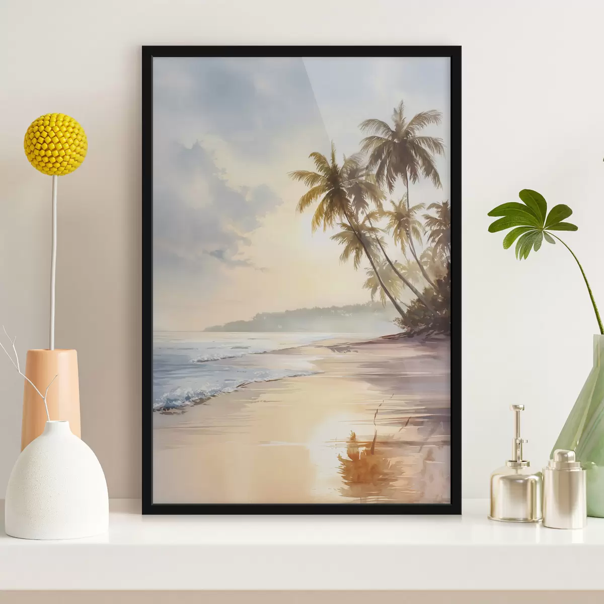 Poster zonsondergangstrand op een eiland in aquarelstijl N° f47135