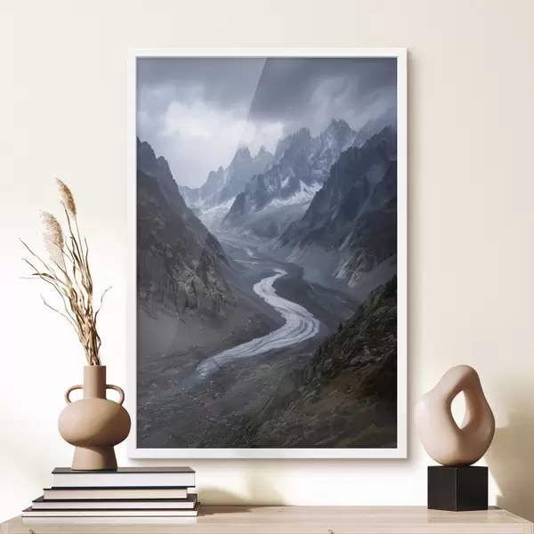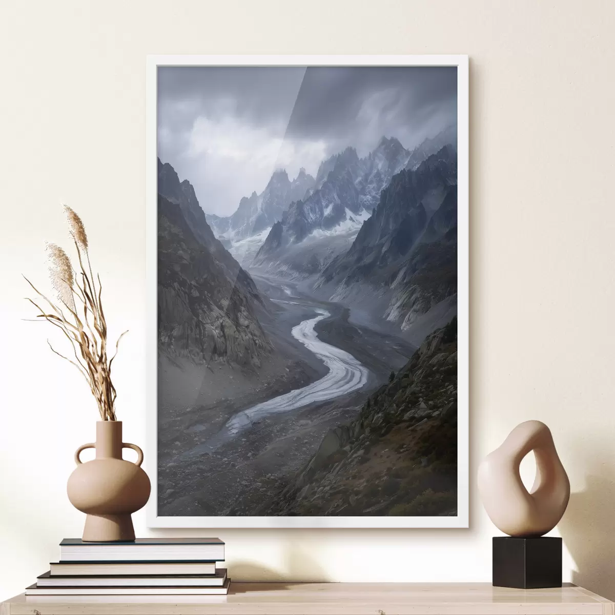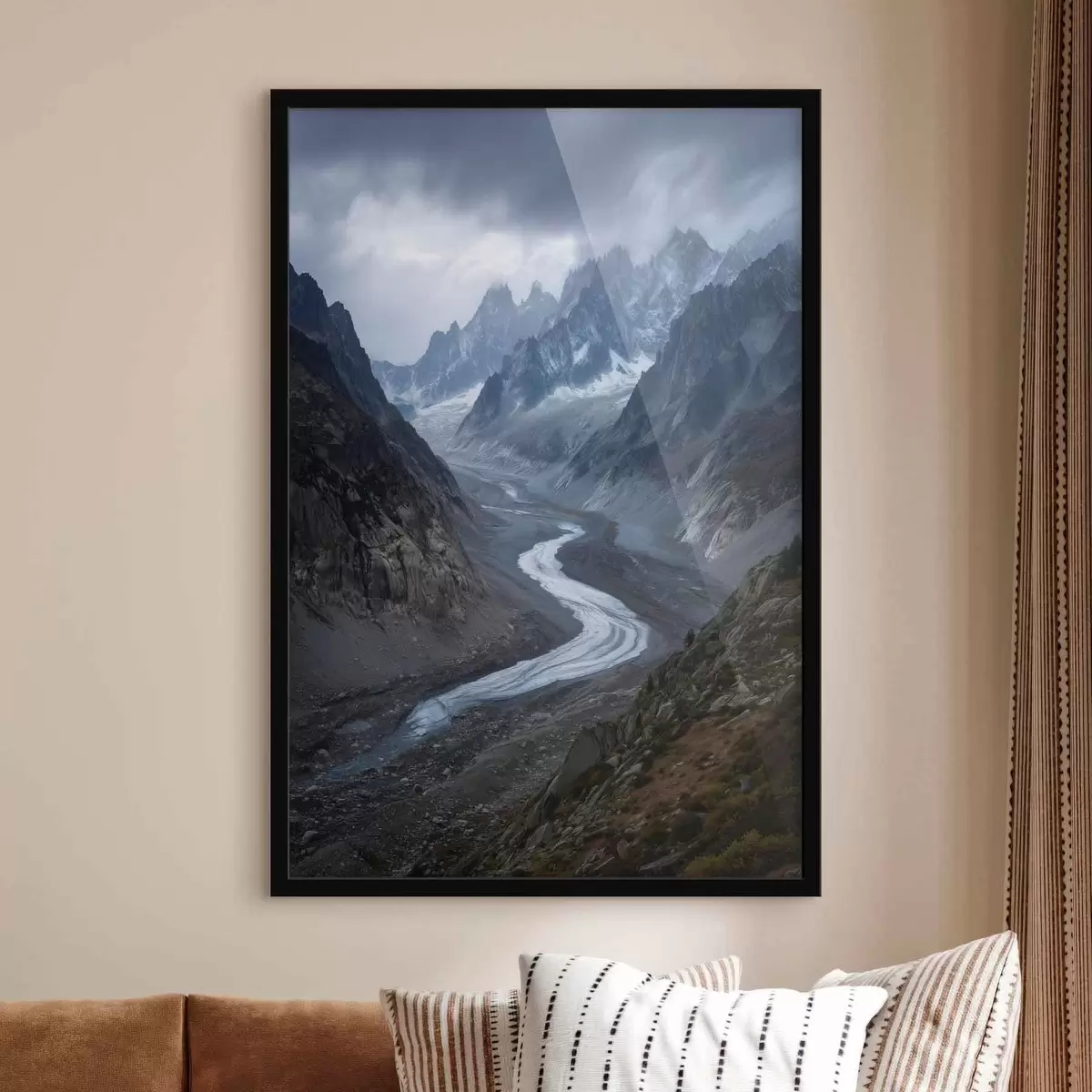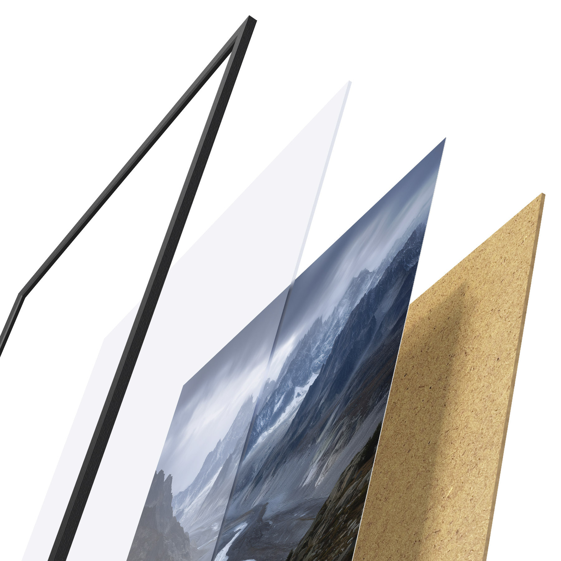 De poster bestaat uit een frame, plexiglas, geprinte afbeelding en spaanplaat achterkant. De poster kan meteen aan de muur worden gehangen dankzij de bevestigingen op de achterkant.