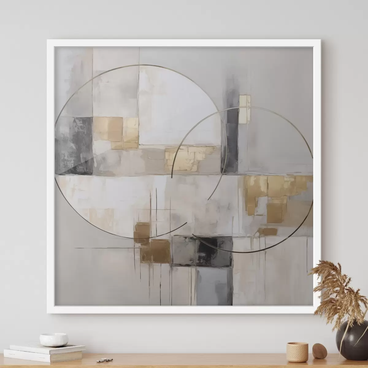 De poster bestaat uit een frame, plexiglas, geprinte afbeelding en spaanplaat achterkant. De poster kan meteen aan de muur worden gehangen dankzij de bevestigingen op de achterkant.