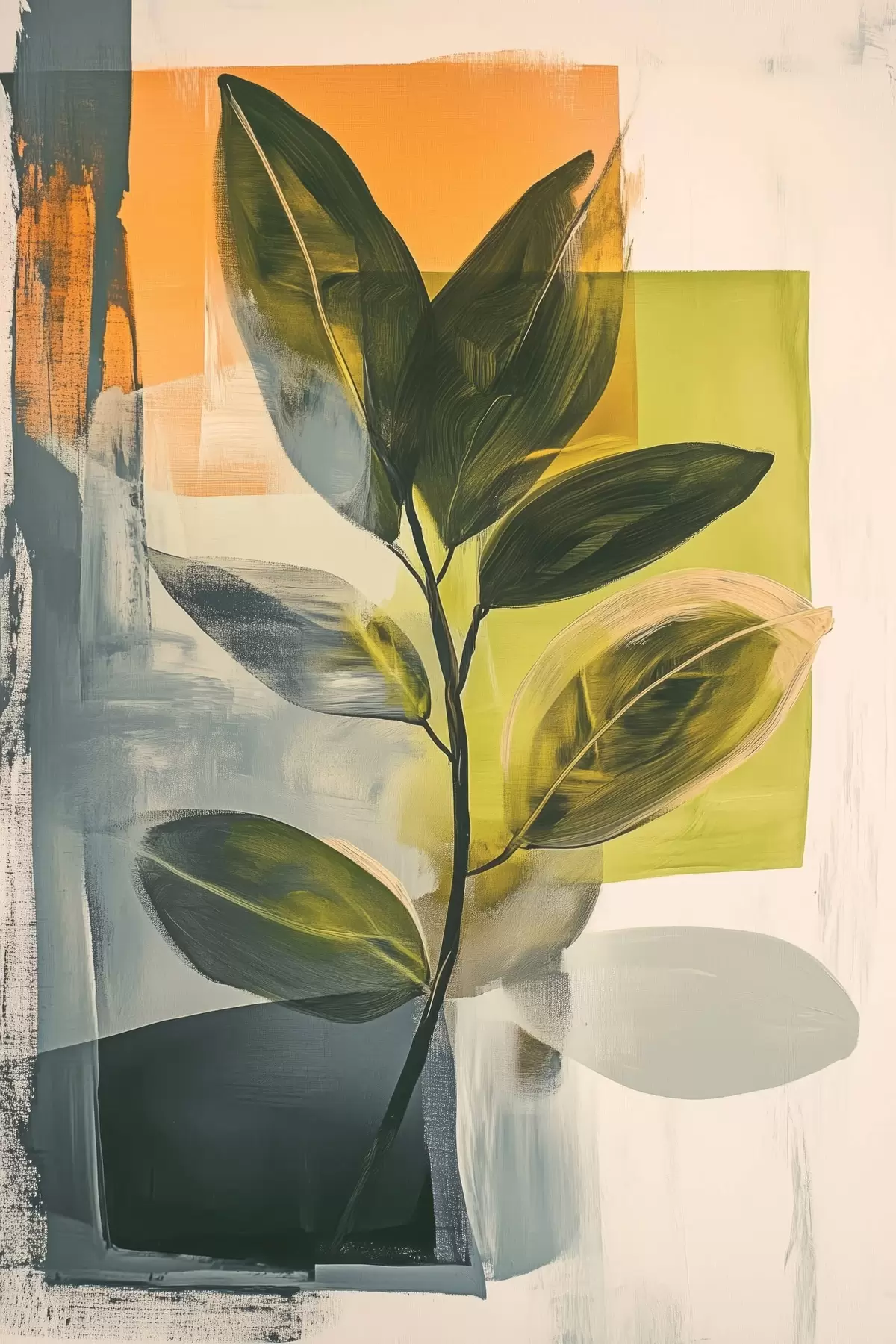 Poster Een tak met bladeren op een abstracte achtergrond N° f47249