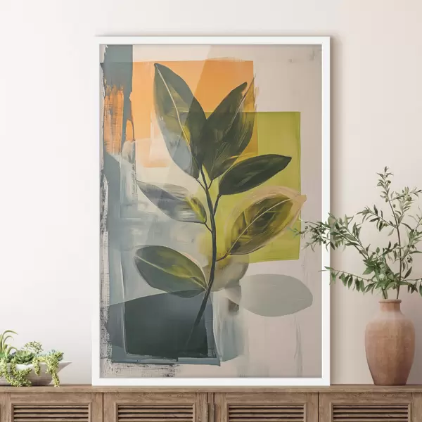 Poster Een tak met bladeren op een abstracte achtergrond f47249