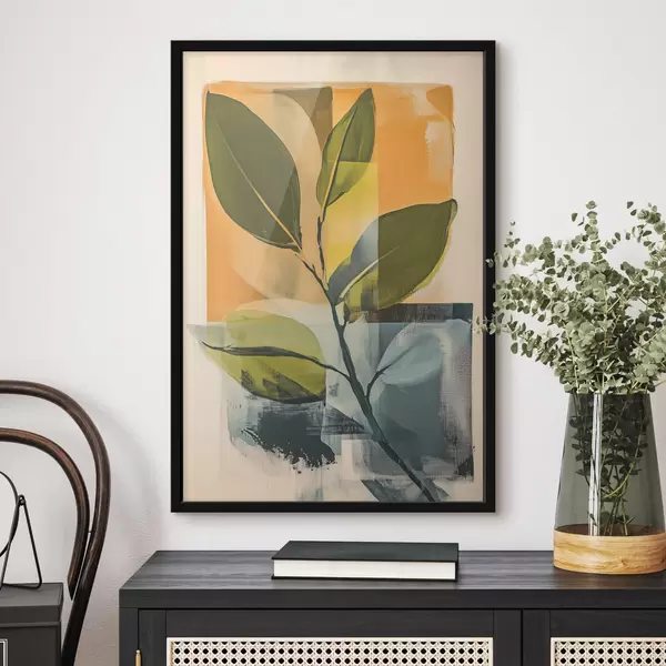 Poster Een tak met bladeren op een abstracte achtergrond f47250