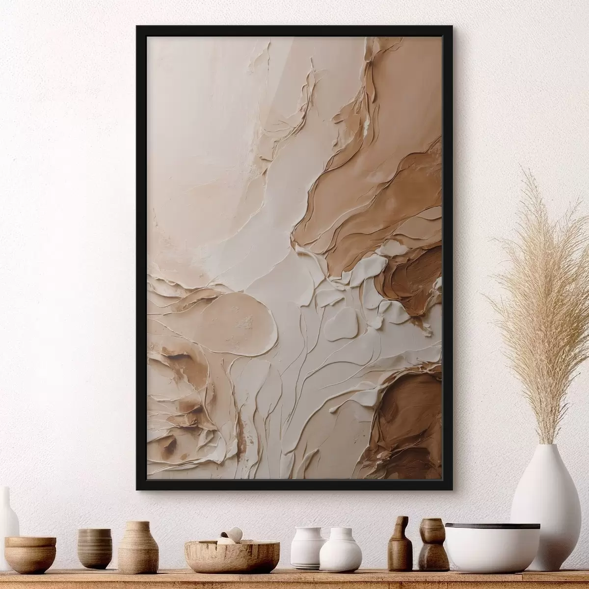 Poster Beige gestructureerde streken met vloeiende lijnen N° f47274
