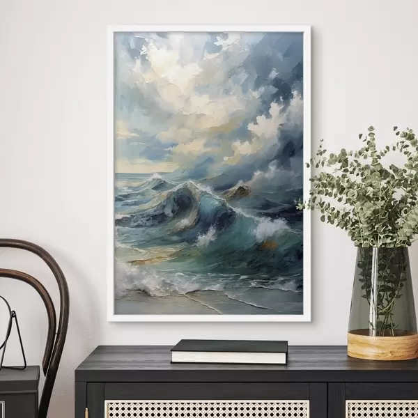 Poster Zeegolven onder een heldere bewolkte hemel N° f47275
