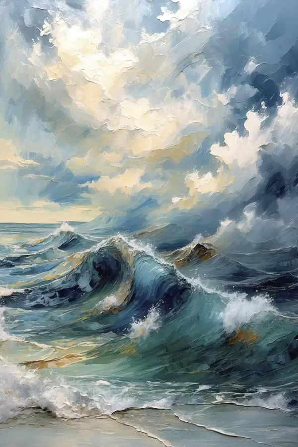 Poster Zeegolven onder een heldere bewolkte hemel N° f47275