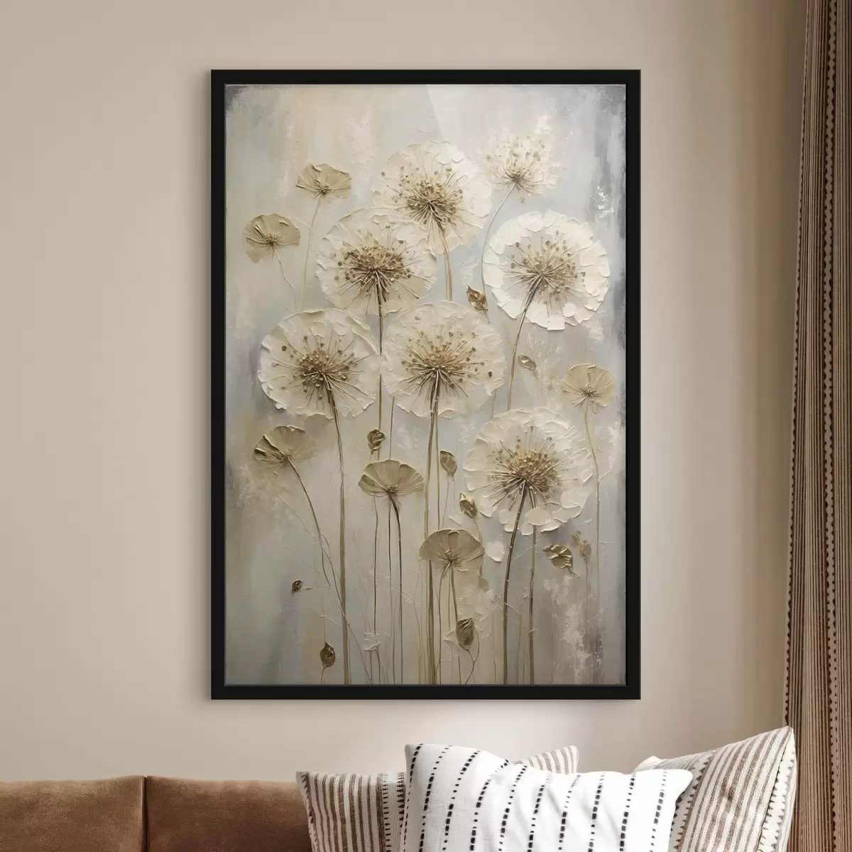 Poster Hoge crèmekleurige bloemen op een lichte achtergrond N° f47282