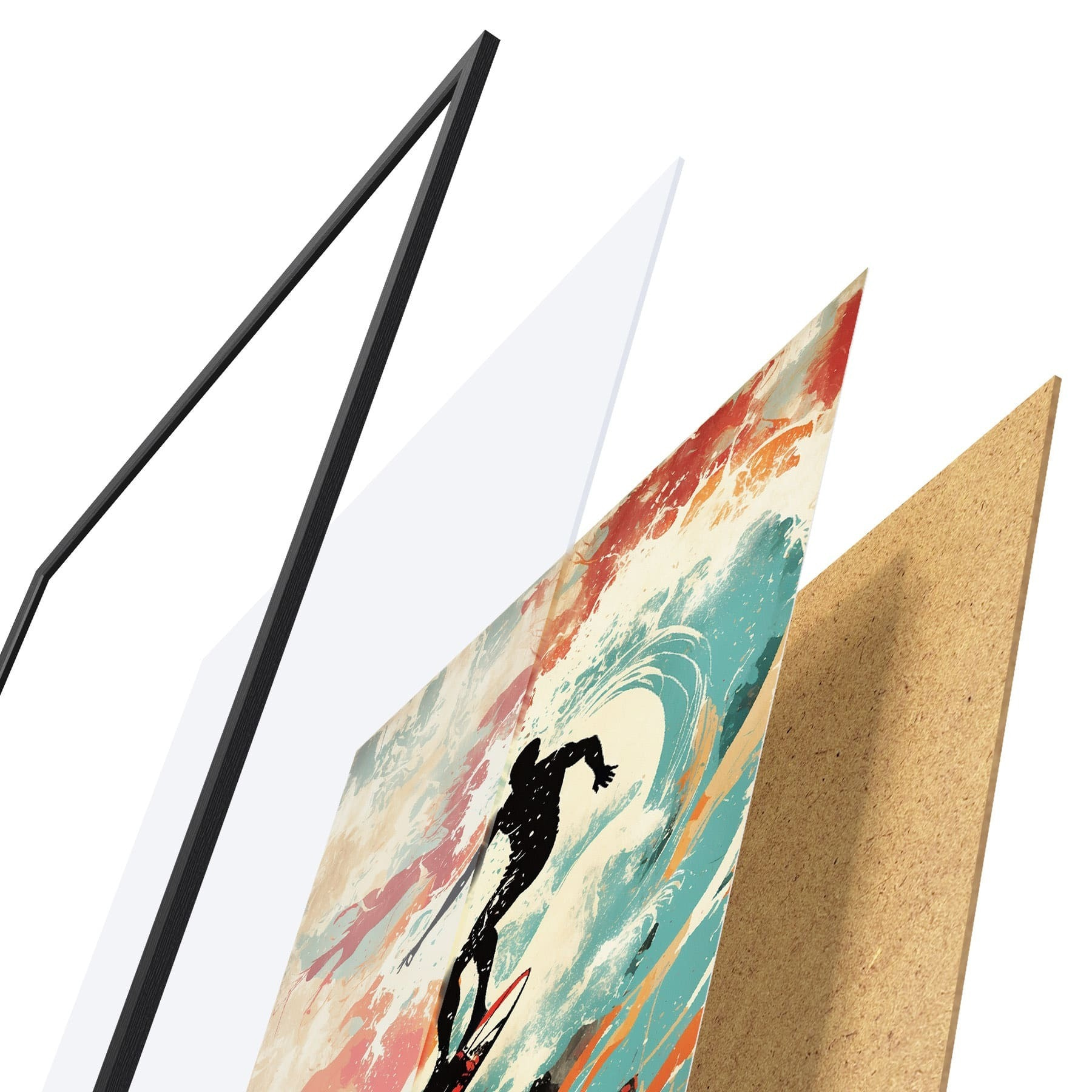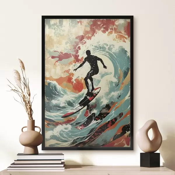 Poster Surfer silhouet op golven in levendige kleuren f47284