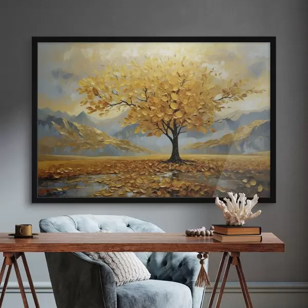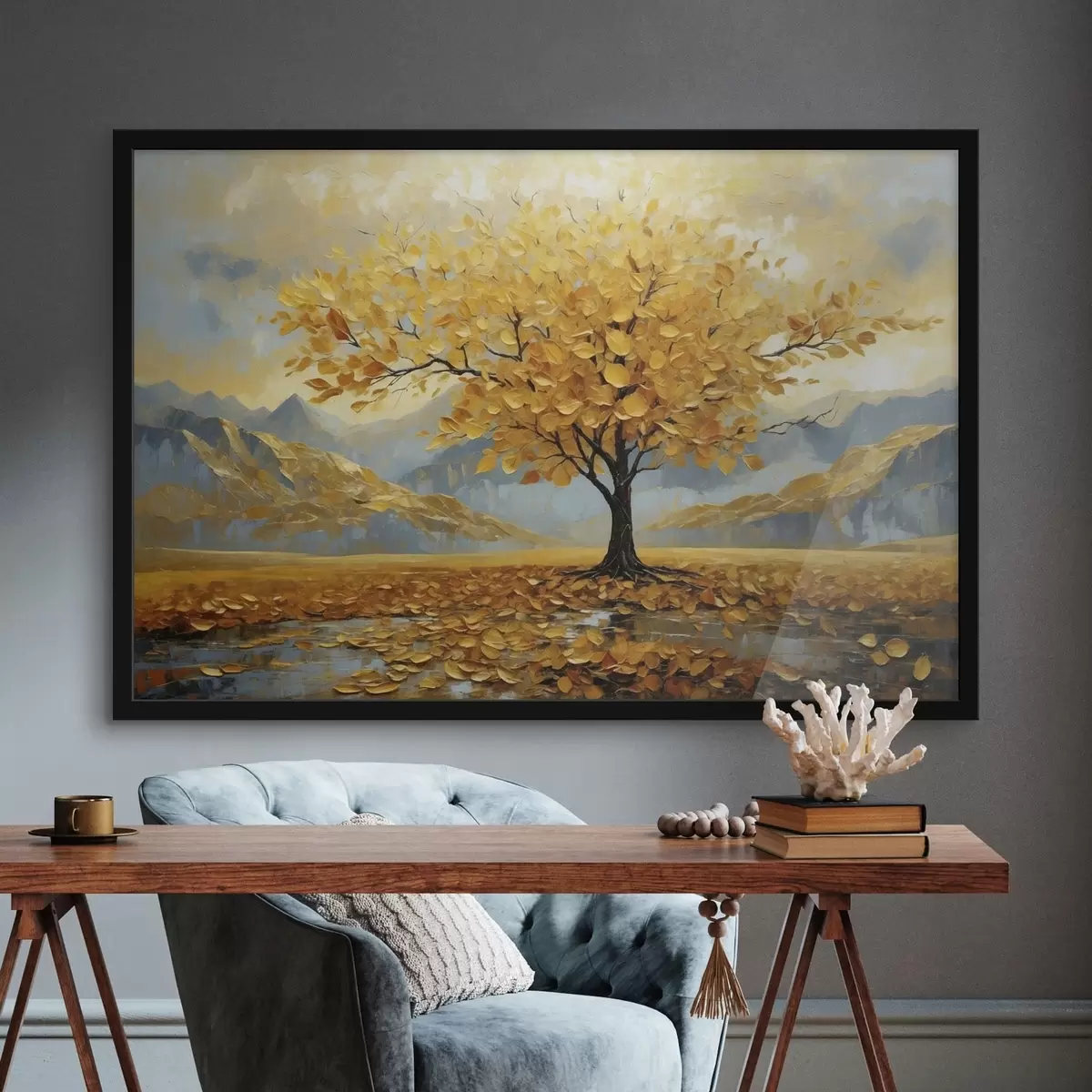 Poster Boom met gele bladeren in een berglandschap N° f47285