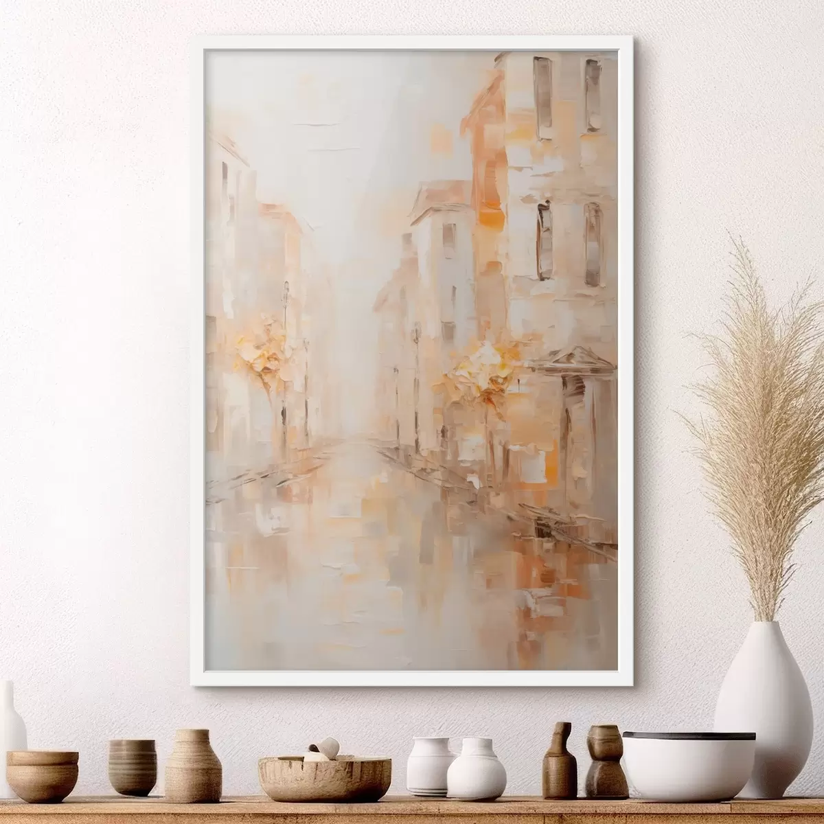 Poster Zachte stadsstraat in warme tinten f47302