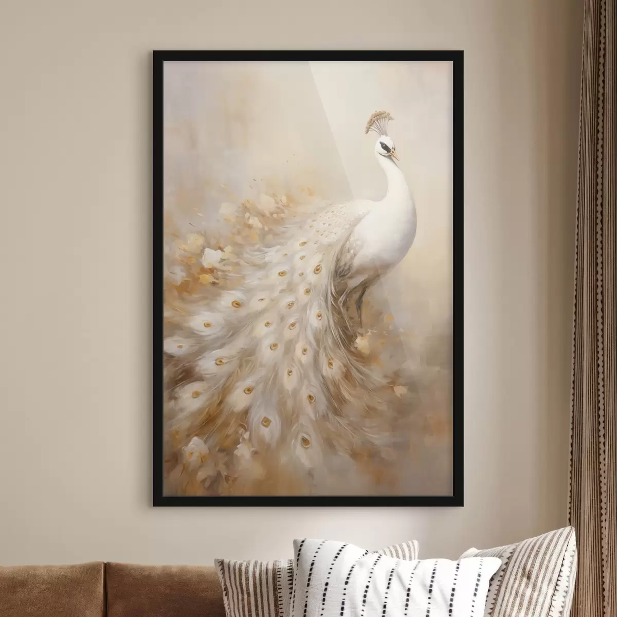 Poster Lichte vogel met lange staart in luchtige tinten N° f47309