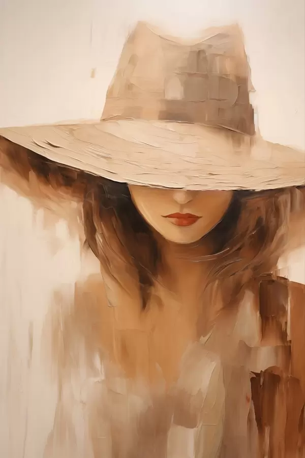 Poster Vrouw met hoed in warme abstracte penseelstreken N° f47312