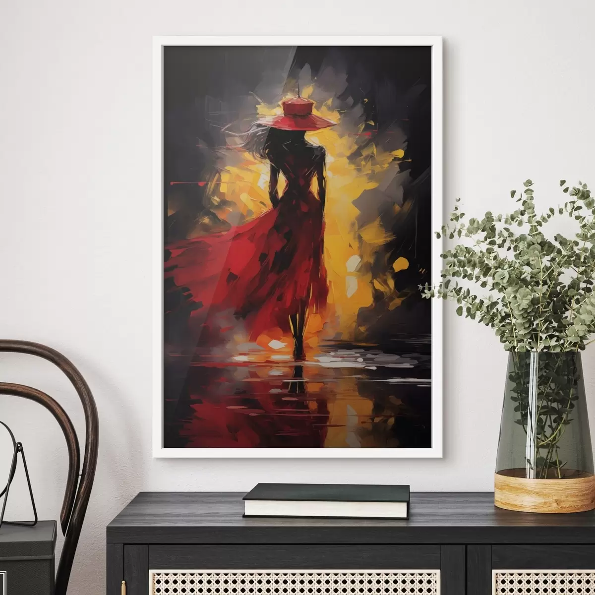 Poster Figuur in rood in fel licht N° f47318