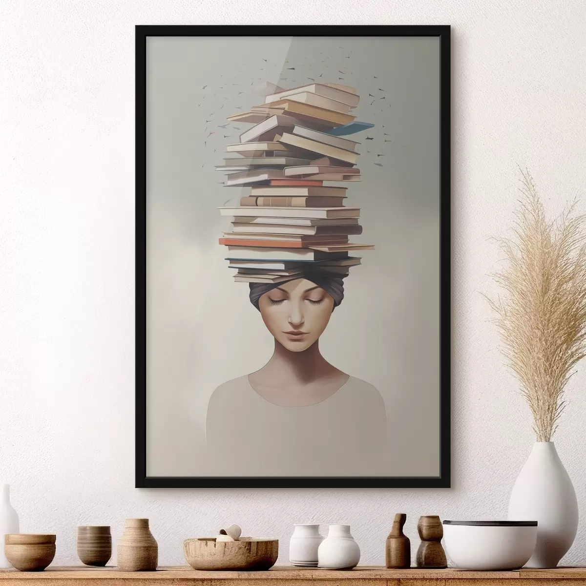 Poster Portret van een meisje met boeken N° f47333