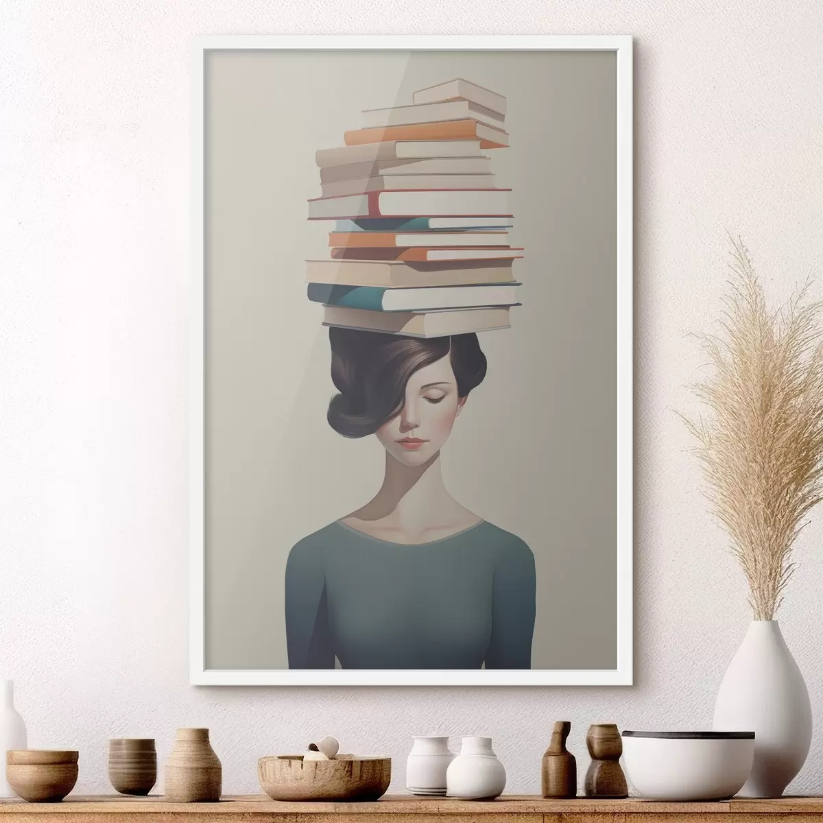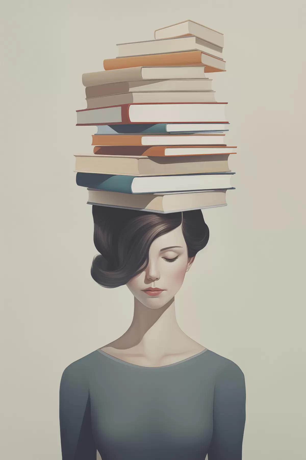 Poster Surrealistisch portret van een meisje met boeken N° f47334