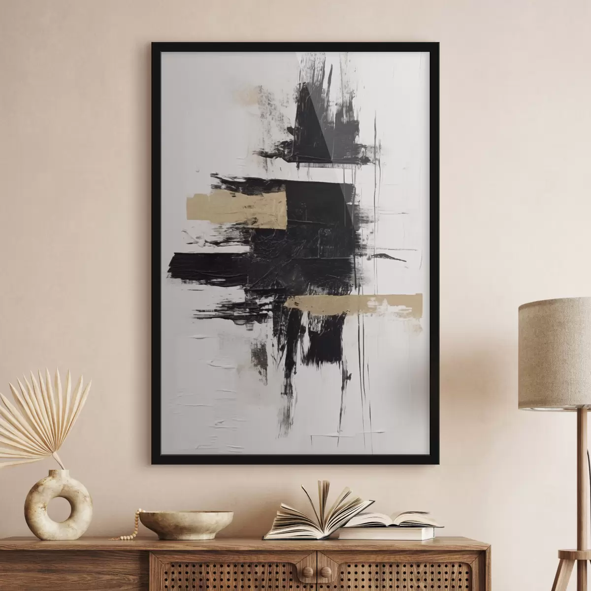 De poster bestaat uit een frame, plexiglas, geprinte afbeelding en spaanplaat achterkant. De poster kan meteen aan de muur worden gehangen dankzij de bevestigingen op de achterkant.