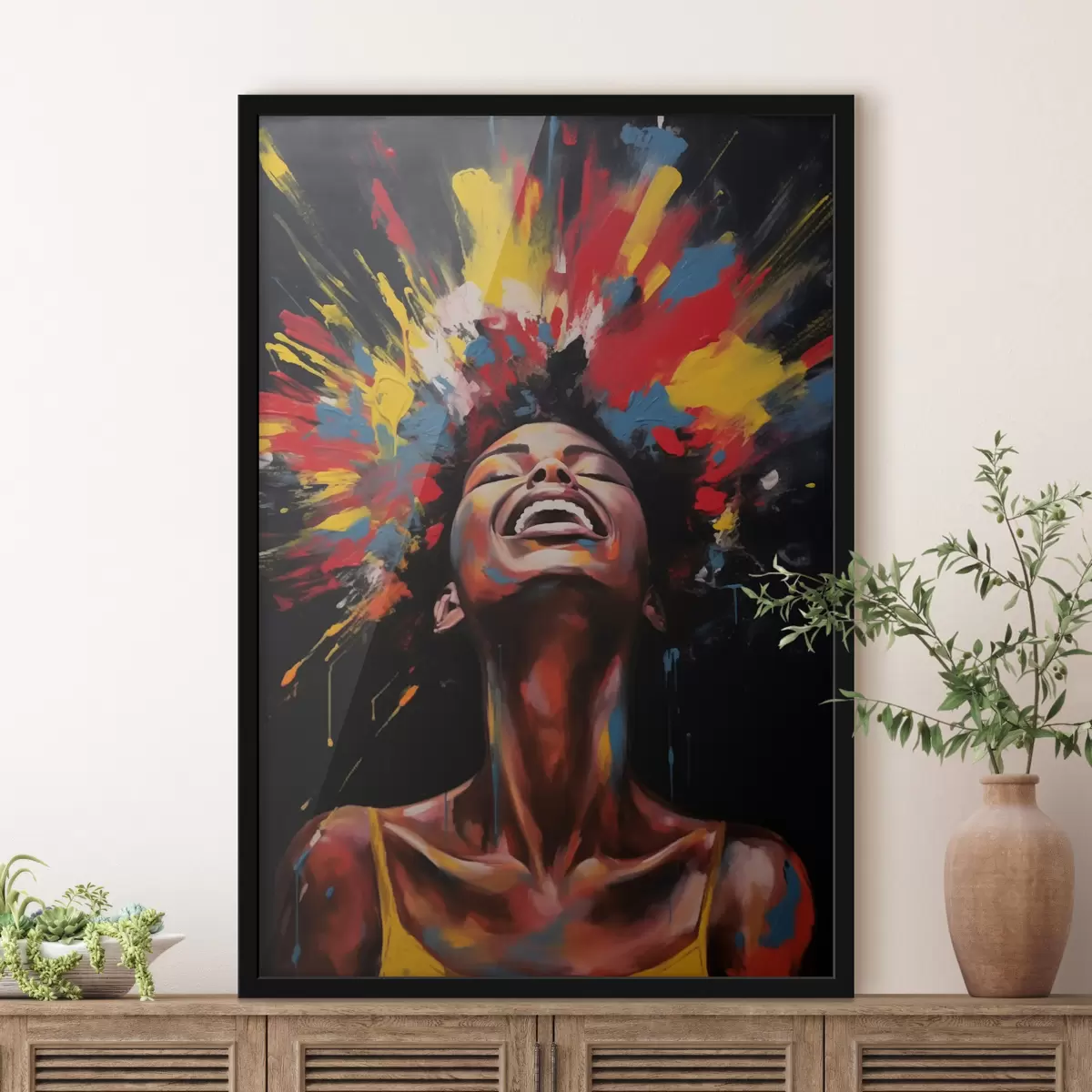 De poster bestaat uit een frame, plexiglas, geprinte afbeelding en spaanplaat achterkant. De poster kan meteen aan de muur worden gehangen dankzij de bevestigingen op de achterkant.