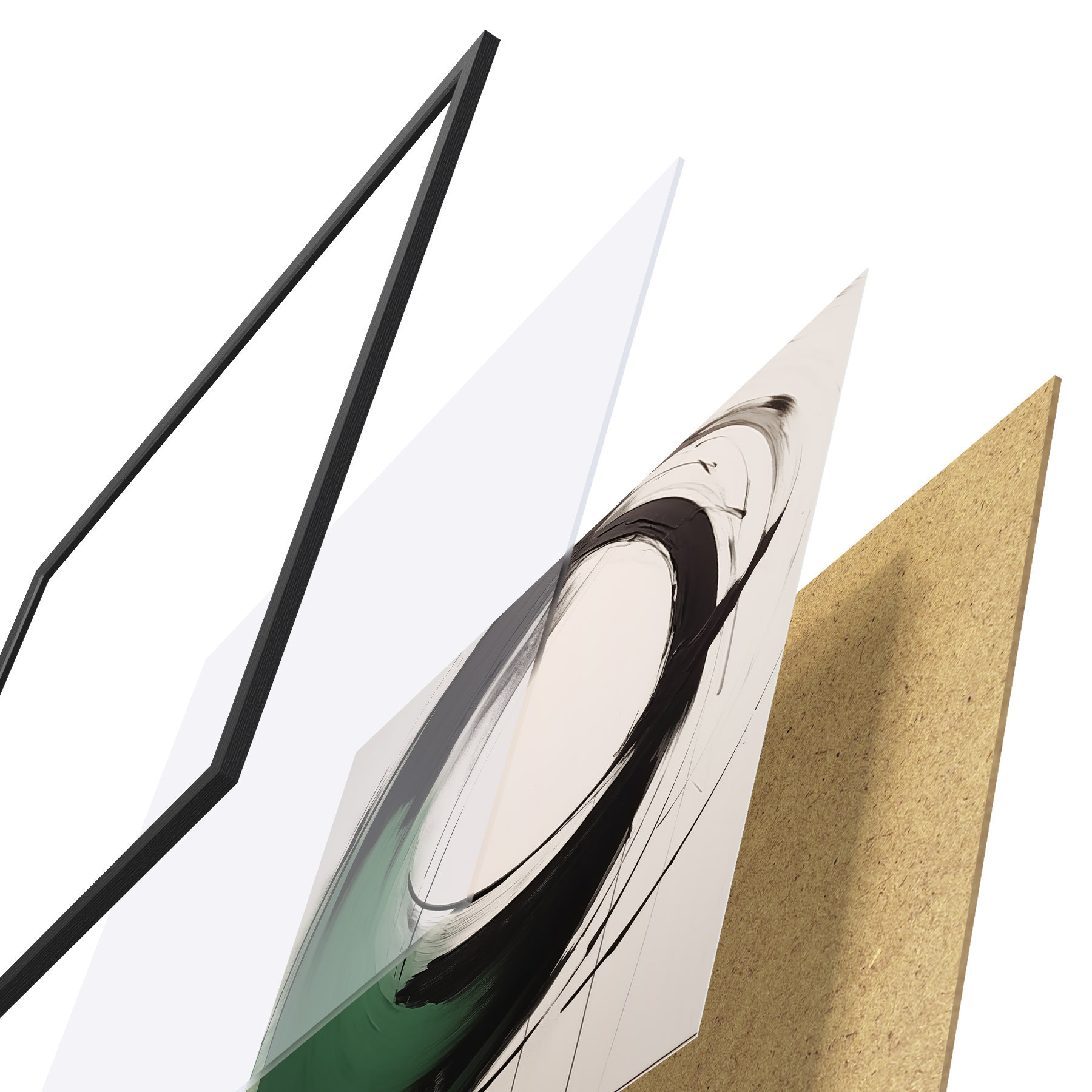 De poster bestaat uit een frame, plexiglas, geprinte afbeelding en spaanplaat achterkant. De poster kan meteen aan de muur worden gehangen dankzij de bevestigingen op de achterkant.