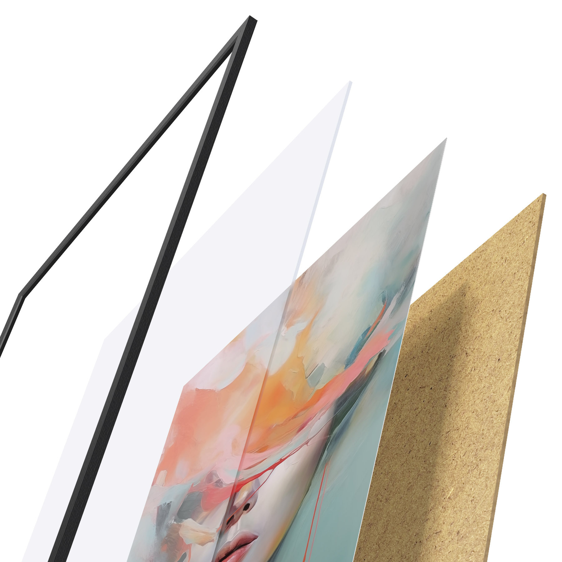 De poster bestaat uit een frame, plexiglas, geprinte afbeelding en spaanplaat achterkant. De poster kan meteen aan de muur worden gehangen dankzij de bevestigingen op de achterkant.