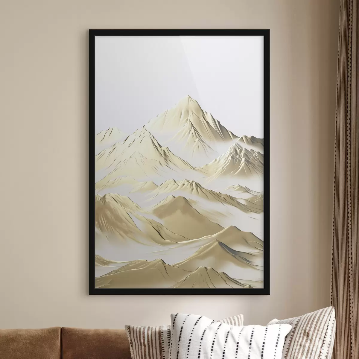 Je kunt het schilderij ophangen aan schroeven. Hiervoor leveren we bevestigingen bij onze foto's, zodat je de foto gemakkelijk kunt ophangen.