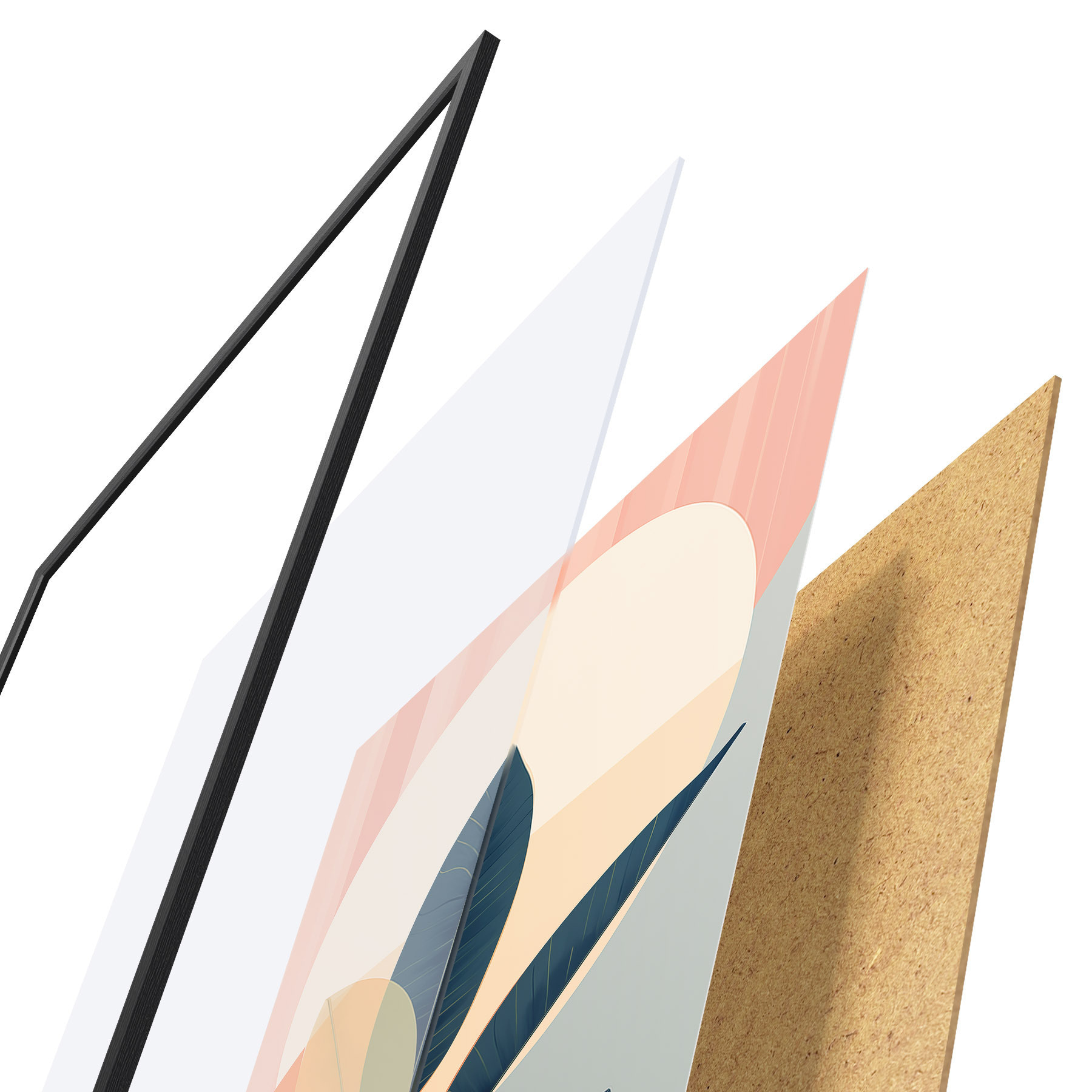 De poster bestaat uit een frame, plexiglas, geprinte afbeelding en spaanplaat achterkant. De poster kan meteen aan de muur worden gehangen dankzij de bevestigingen op de achterkant.
