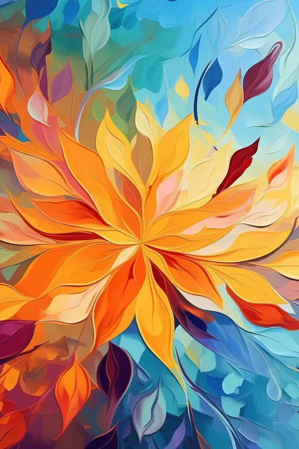 Poster Abstracte bloemen, imitatie-olieverfschilderij N° f47445