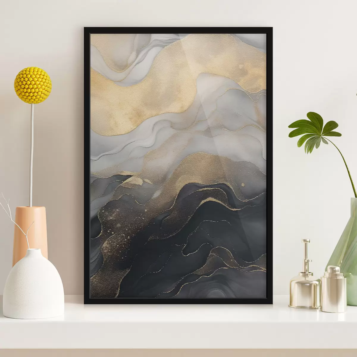 De poster bestaat uit een frame, plexiglas, geprinte afbeelding en spaanplaat achterkant. De poster kan meteen aan de muur worden gehangen dankzij de bevestigingen op de achterkant.