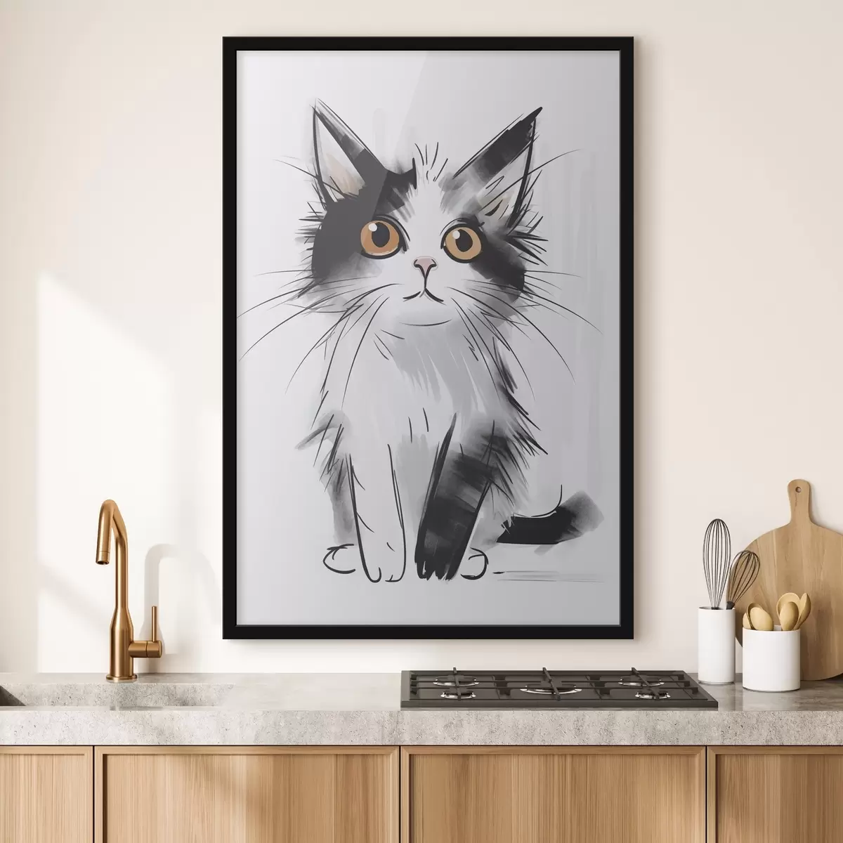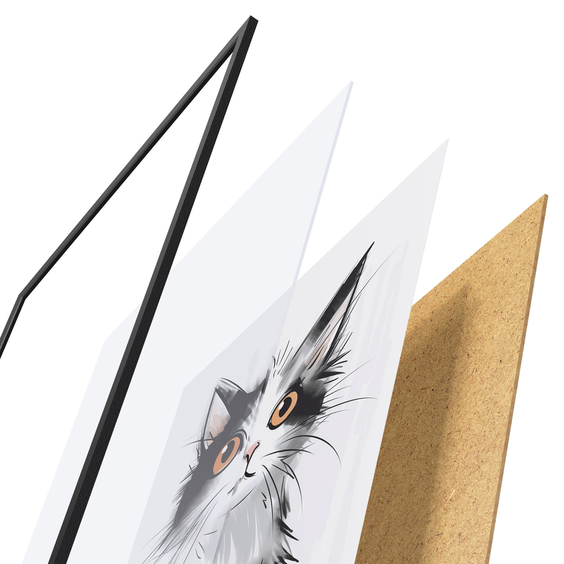 De poster bestaat uit een frame, plexiglas, geprinte afbeelding en spaanplaat achterkant. De poster kan meteen aan de muur worden gehangen dankzij de bevestigingen op de achterkant.