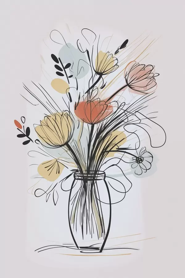 Poster Bloemen in een vaas, imitatie van een tekening N° f47494