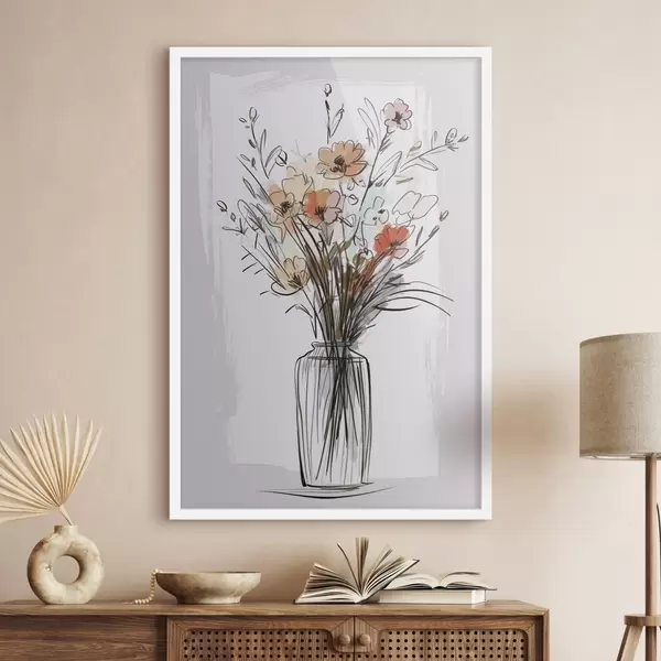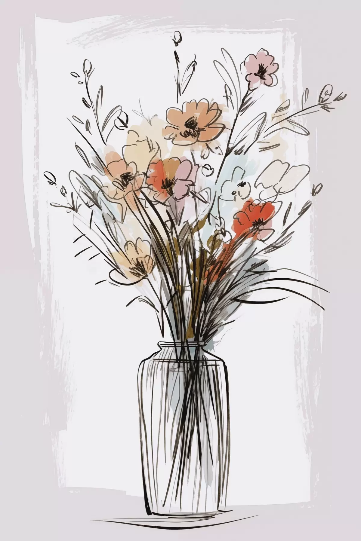 Poster Bloemen in een vaas, imitatie van een tekening N° f47495