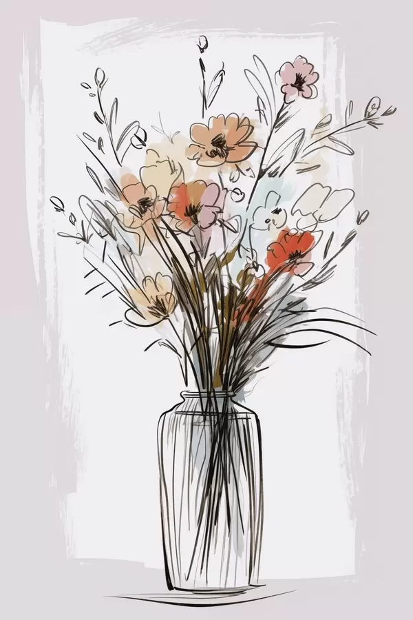 Poster Bloemen in een vaas, imitatie van een tekening N° f47495