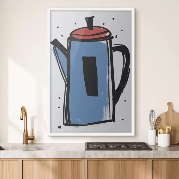 Poster Koffiepot imitatie van een primitieve tekening N° f47496
